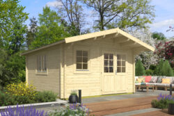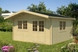 Include una doppia porta e finestre dotate di unità vetrata e realizzate in legno lamellare, soglia in acciaio inossidabile, travi di fondazione impregnate, elementi di fissaggio e istruzioni di installazione.