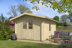 Include una porta e finestre dotate di unità vetrata e realizzate in legno lamellare, soglia in acciaio inossidabile, travi di fondazione impregnate, elementi di fissaggio e istruzioni di installazione.
