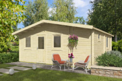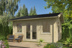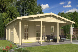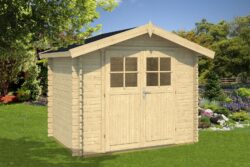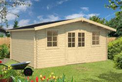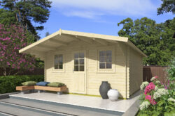 Include una doppia porta e finestre dotate di unità vetrata e realizzate in legno lamellare, soglia in acciaio inossidabile, travi di fondazione impregnate, elementi di fissaggio e istruzioni di installazione.
