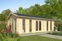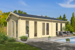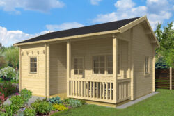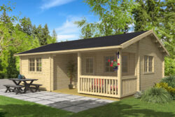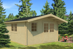 Include una porta e finestre dotate di unità vetrata e realizzate in legno lamellare, soglia in acciaio inossidabile, travi di fondazione impregnate, elementi di fissaggio e istruzioni di installazione.