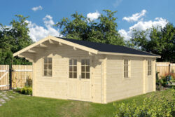 Include una doppia porta e finestre dotate di unità vetrata e realizzate in legno lamellare, porte interne, soglia in acciaio inossidabile, travi di fondazione impregnate, elementi di fissaggio e istruzioni di installazione.