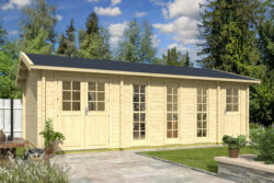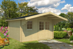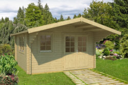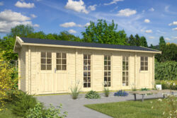 Include una doppia porta e finestre dotate di unità vetrata e realizzate in legno lamellare, soglia in acciaio inossidabile, travi di fondazione impregnate, elementi di fissaggio e istruzioni di installazione.