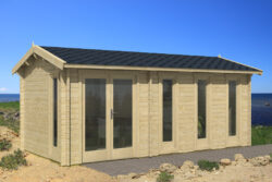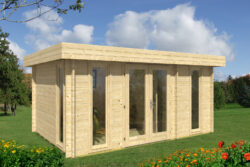 Include una porta e finestre dotate di unità vetrata e realizzate in legno lamellare, soglia in acciaio inossidabile, travi di fondazione impregnate, elementi di fissaggio e istruzioni di installazione.