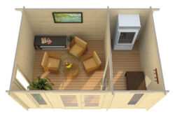 Le casette da giardino da 40 mm, le baite, le coperture, i padiglioni, le saune, i chioschi, le casette per barbecue e i garage in legno fabbricati nello stabilimento Tene sono completi di porte, finestre (a seconda del modello, il prodotto potrebbe non avere finestre o una o più finestre), pavimento, elementi di fissaggio e istruzioni di installazione, rendendo l’installazione semplice e veloce.