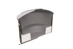 L’interno e la copertura della vasca idromassaggio sono realizzati in plastica PE (polietilene) fusa in rotazione. Il getto della seduta all’interno è isolato con polistirene espanso da 40 cm.