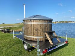 Vasca idromassaggio con copertura su ruote per 6 persone.