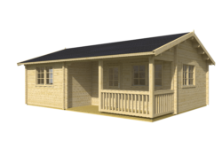 Include una porta e finestre dotate di unità vetrata e realizzate in legno lamellare, soglia in acciaio inossidabile, travi di fondazione impregnate, elementi di fissaggio e istruzioni di installazione.