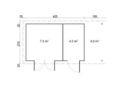 A seconda del modello, il set casetta da giardino di Tene con pareti spesse 28 mm include quanto segue: