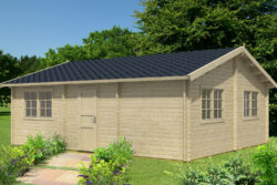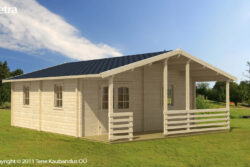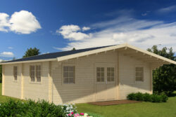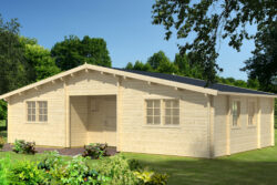 Include una porta e finestre dotate di unità vetrata e realizzate in legno lamellare, porte interne, soglia in acciaio inossidabile, travi di fondazione impregnate, elementi di fissaggio e istruzioni di installazione.