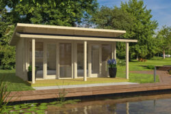 Include una doppia porta e finestre dotate di unità vetrata e realizzate in legno lamellare, soglia in acciaio inossidabile, travi di fondazione impregnate, elementi di fissaggio e istruzioni di installazione.