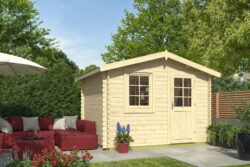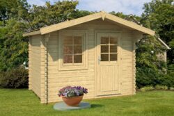 Include una porta e finestre dotate di unità vetrata e realizzate in legno lamellare, soglia in acciaio inossidabile, travi di fondazione impregnate, elementi di fissaggio e istruzioni di installazione.