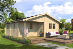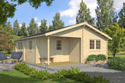 Include una porta e finestre dotate di unità vetrata e realizzate in legno lamellare, porte interne, soglia in acciaio inossidabile, travi di fondazione impregnate, elementi di fissaggio e istruzioni di installazione.
