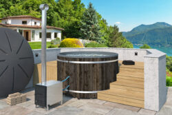 Vasca idromassaggio Premium, Ø 207 con copertura grigio granito