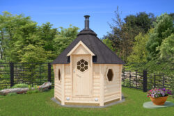 Include una doppia porta e finestra dotate di unità vetrata e realizzate in legno lamellare, soglia in acciaio inossidabile, travi di fondazione impregnate, elementi di fissaggio e istruzioni di installazione.