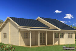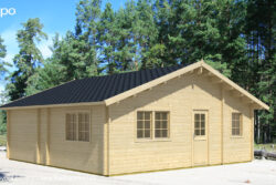 Include una porta e finestre dotate di unità vetrata e realizzate in legno lamellare, porte interne, soglia in acciaio inossidabile, travi di fondazione impregnate, elementi di fissaggio e istruzioni di installazione.
