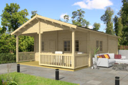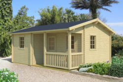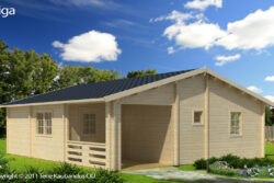 Include una doppia porta e finestre dotate di unità vetrata e realizzate in legno lamellare, porte interne, soglia in acciaio inossidabile, travi di fondazione impregnate, elementi di fissaggio e istruzioni di installazione.