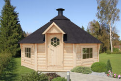 Include una doppia porta e finestra dotate di unità vetrata e realizzate in legno lamellare, soglia in acciaio inossidabile, travi di fondazione impregnate, elementi di fissaggio e istruzioni di installazione.
