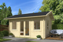 Include una doppia porta e finestre dotate di unità vetrata e realizzate in legno lamellare, soglia in acciaio inossidabile, travi di fondazione impregnate, elementi di fissaggio e istruzioni di installazione.