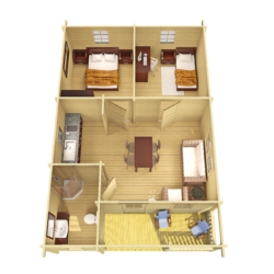 Le casette da giardino da 70 mm, le baite, le coperture, i padiglioni, le saune, i chioschi, le casette per barbecue e i garage in legno fabbricati nello stabilimento Tene sono completi di porte, finestre, pavimento, elementi di fissaggio e istruzioni di installazione, rendendo l’installazione semplice e veloce.