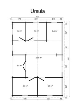 Il set baita con parete da 70 mm di spessore di TENE comprende quanto segue in base al disegno del prodotto: