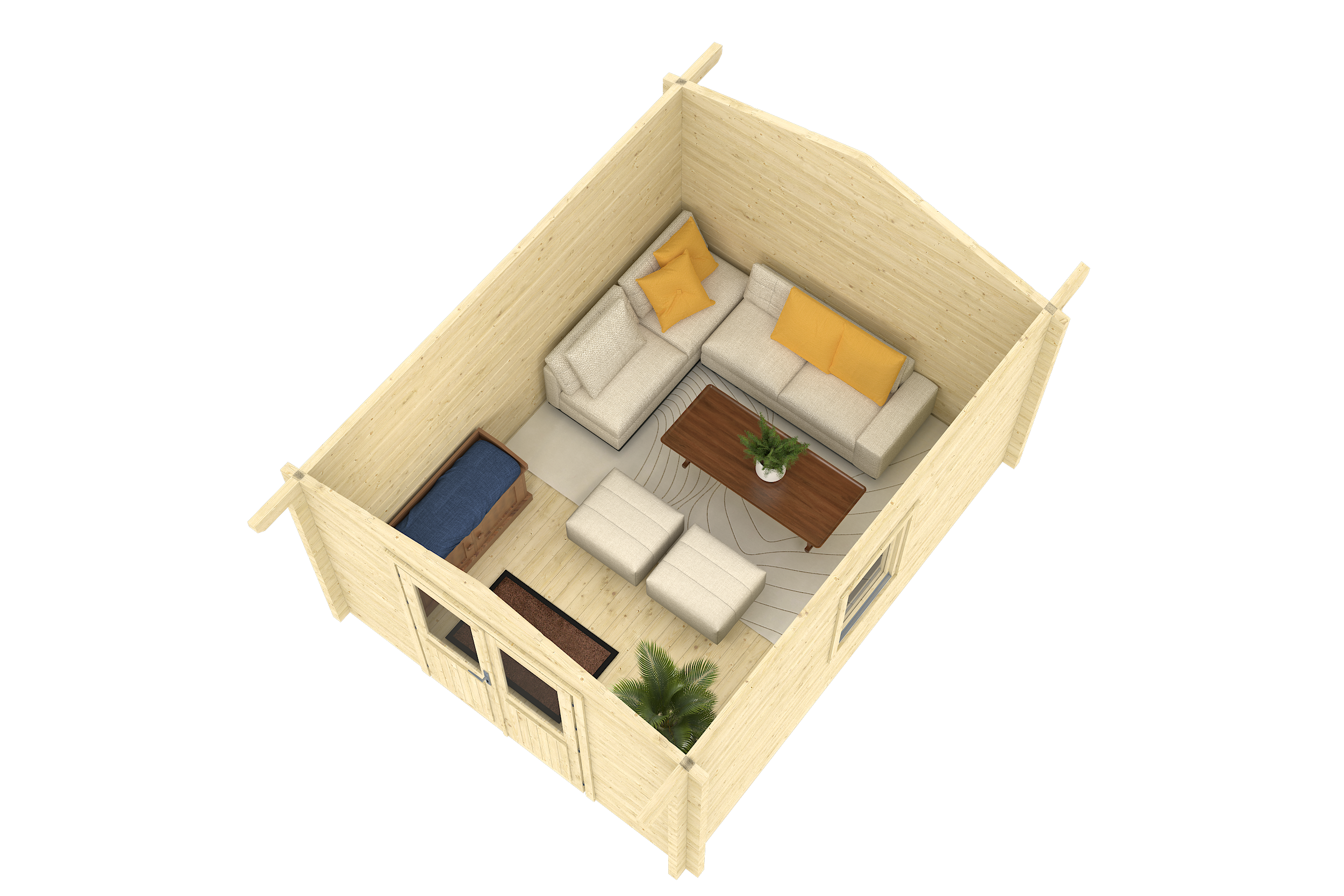 Il set casetta da giardino con parete da 70 mm di spessore di TENE comprende quanto segue in base al disegno del prodotto: