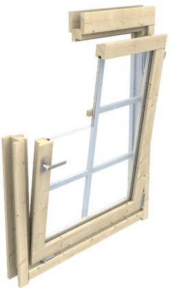 finestra ad anta e ribalta con vetrata, comprensiva di ferramenta;